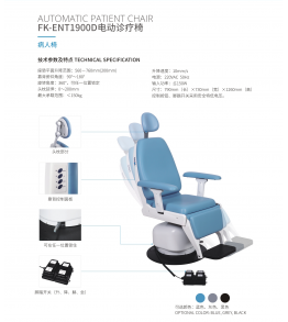 司專業生產FK-ENT1800系列耳鼻咽喉科診療臺、FK-ENT1900系列全自動診療椅,FK-MCS388系列全高清醫用內窺鏡攝像系統。產品以人性化、環保性、便捷時尚的設計理念,吸收國內外先進技術,集超靜音噴霧、吸引、預熱、照明、污物處理、圖像數字處理于一體的光機電高科技產品,其技術性能優于國內外同類產品。